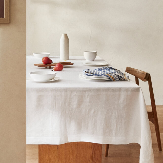 Checked duvet cover in 180 thread count cotton percale. Concealed button fastening at the bottom.