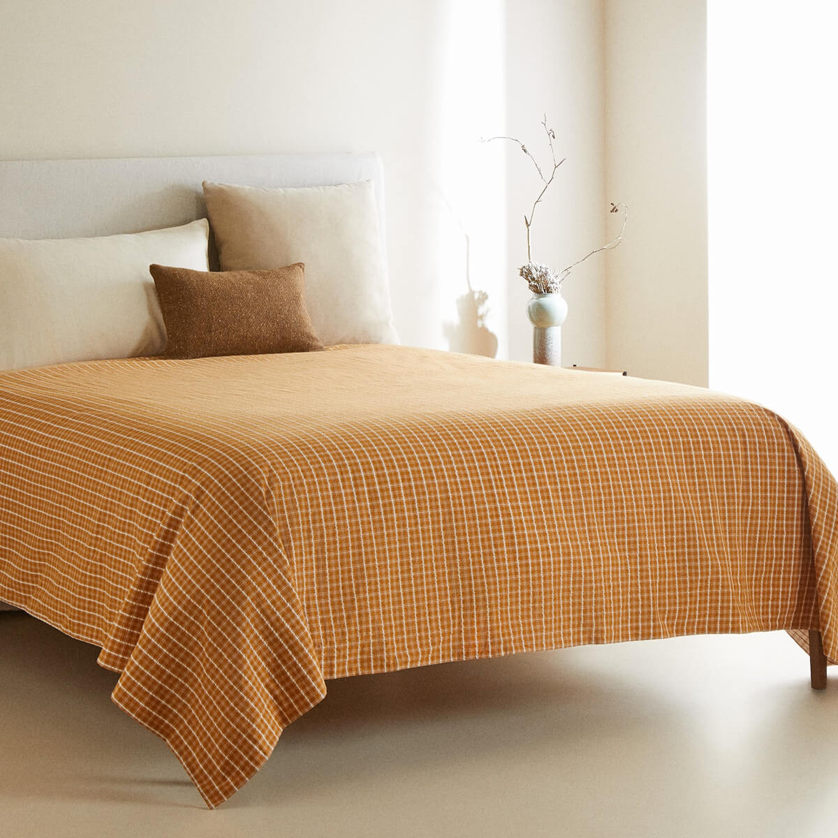 Checked duvet cover in 180 thread count cotton percale. Concealed button fastening at the bottom.