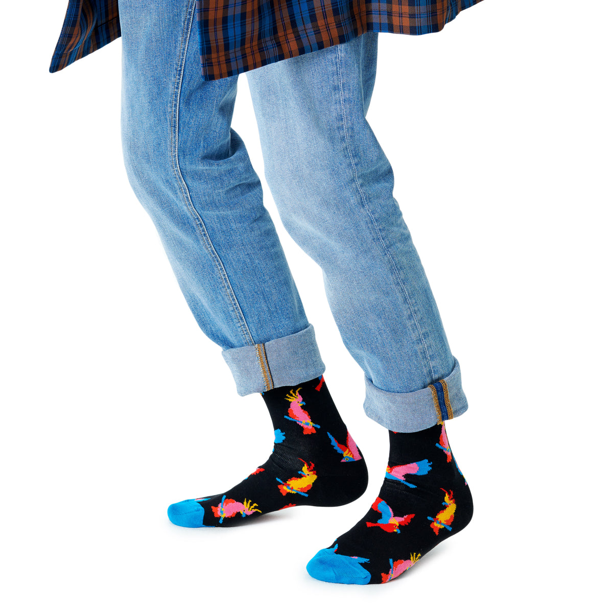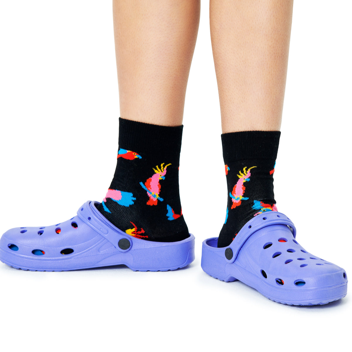 The colorful Cockatoo half crew sock is a fun-packed celebration of the tiny tropical winged beast scientists call Cacatuidae