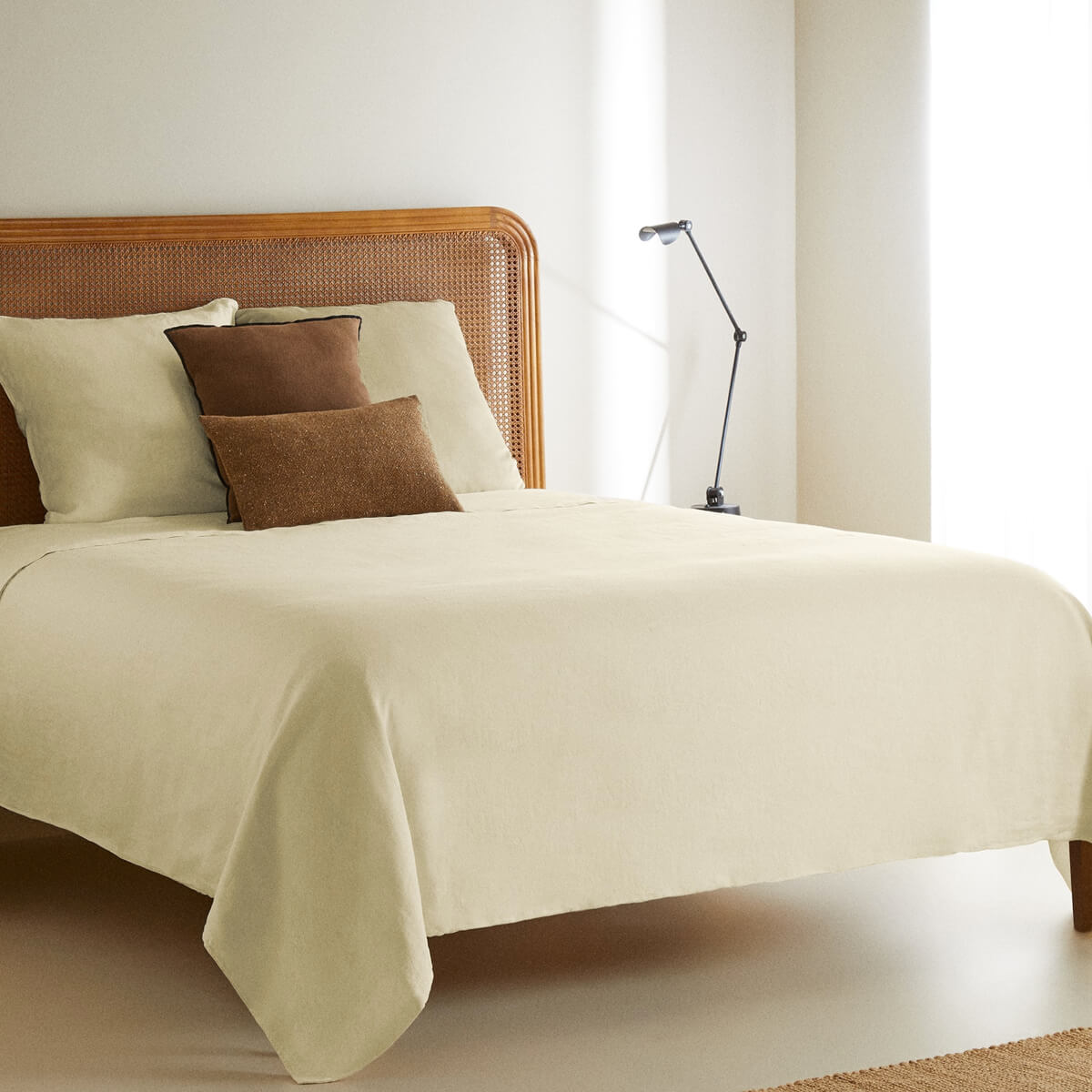 Plain duvet cover in 180 thread count cotton percale. Concealed button fastening at the bottom.